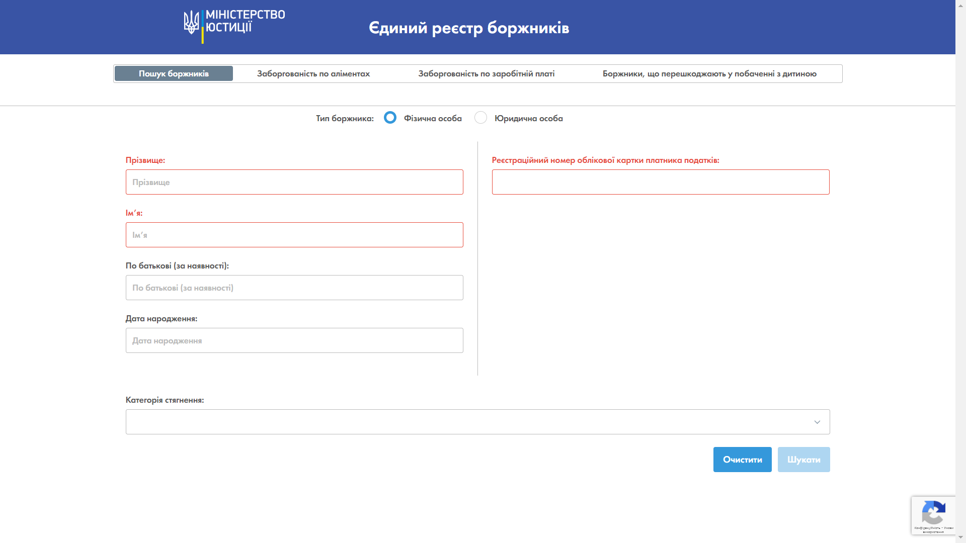 Система подібна до АСВП. Але пошук можна здійснити також за податковим номером (РНОКПП) боржника.
